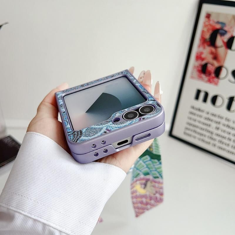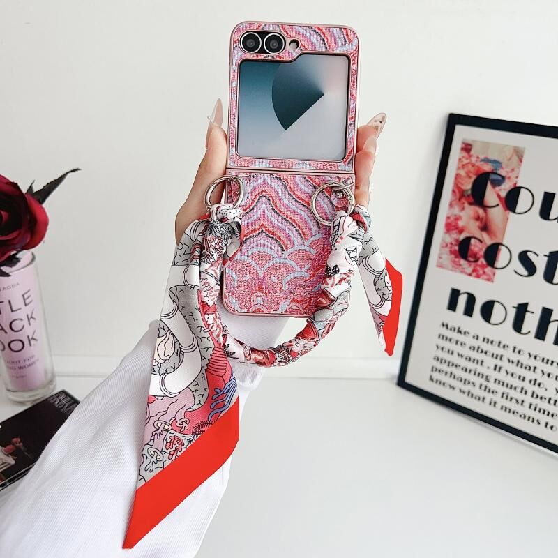 For Samsung Galaxy Z Flip6 Propitious Clouds Embroidery Full Coverage Phone Case with Scarf / Bracelet(Red)