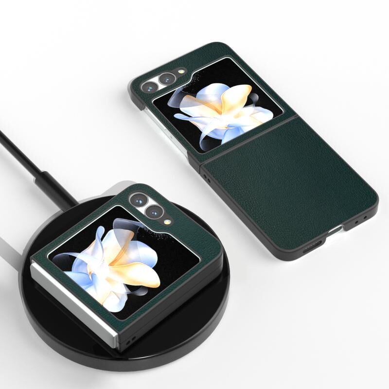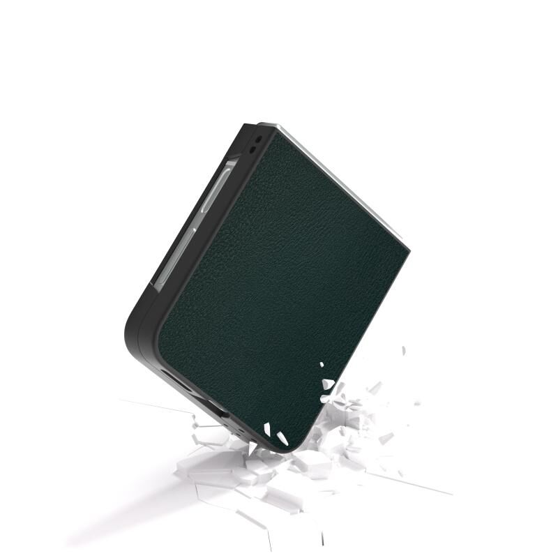 Για Samsung Galaxy Z Flip6 PU δέρμα μαύρο πλαίσιο πλήρους κάλυψης υπόθεση τηλεφώνου (πράσινο)