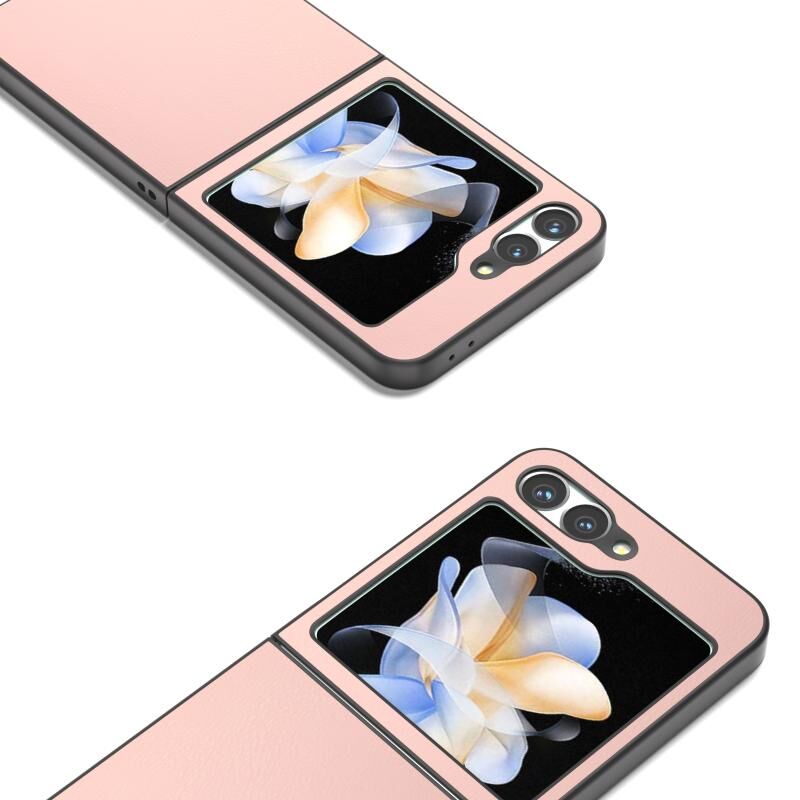 Για Samsung Galaxy Z Flip6 PU δέρμα μαύρο πλαίσιο πλήρους κάλυψης τηλέφωνο υπόθεση (ανοιχτό ροζ)