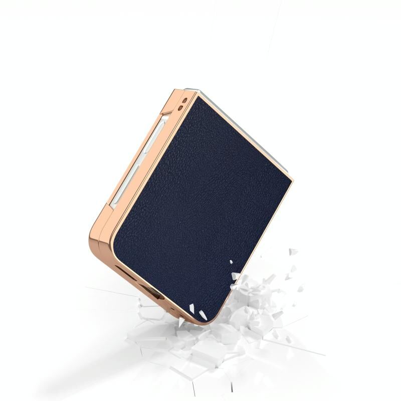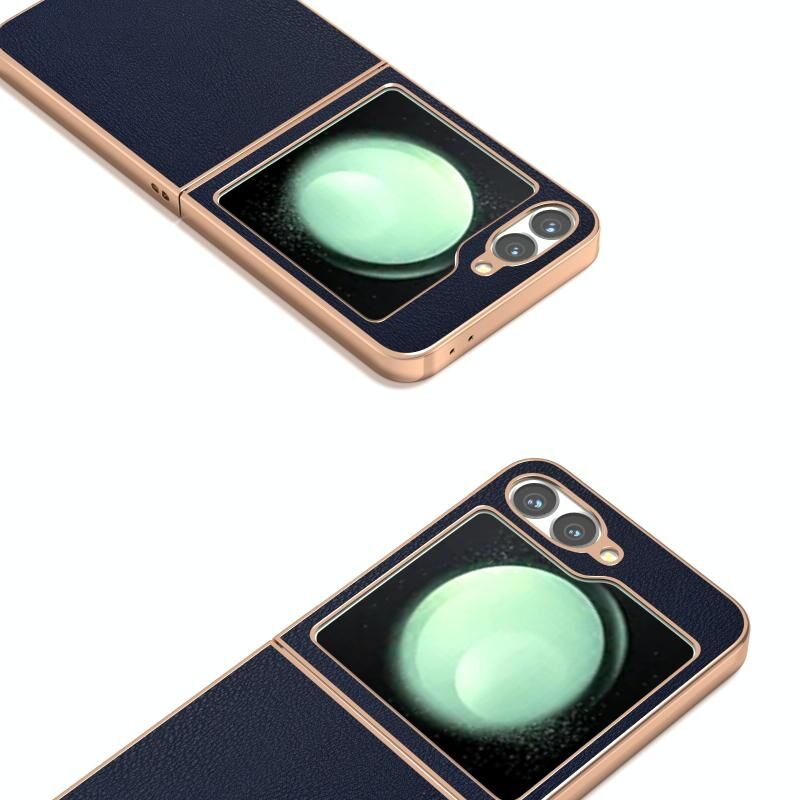 Για Samsung Galaxy Z Flip6 PU δέρμα Electroplating πλαίσιο πλήρους κάλυψης υπόθεση τηλεφώνου (σκούρο μπλε)