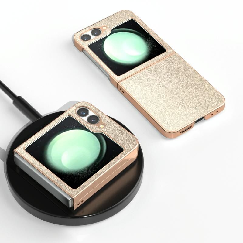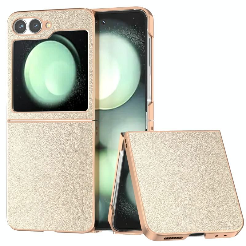 Για Samsung Galaxy Z Flip6 PU δέρμα Electroplating πλαίσιο πλήρους κάλυψης υπόθεση τηλεφώνου (χρυσό)