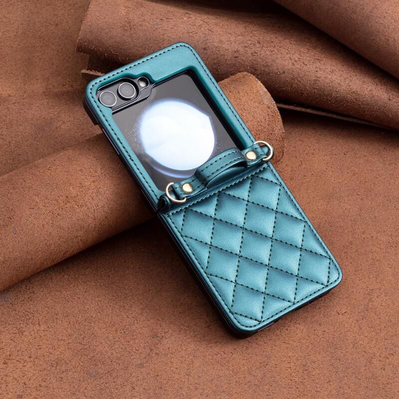 Για το Samsung Galaxy Z Flip6 Rhombus σχήμα σταυρό κορδόνι δερμάτινη θήκη τηλεφώνου Lanyard (πράσινο)