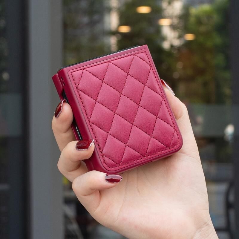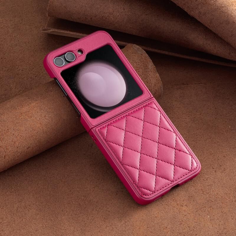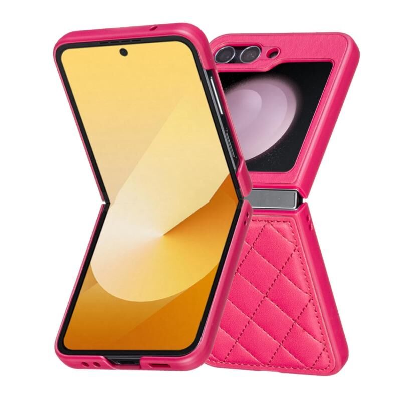 Για Samsung Galaxy Z Flip6 Rhombus-shaped Leather Back Cover Phone Case (Rose Red)