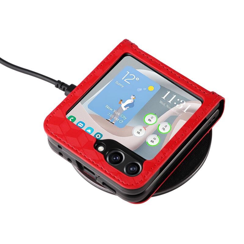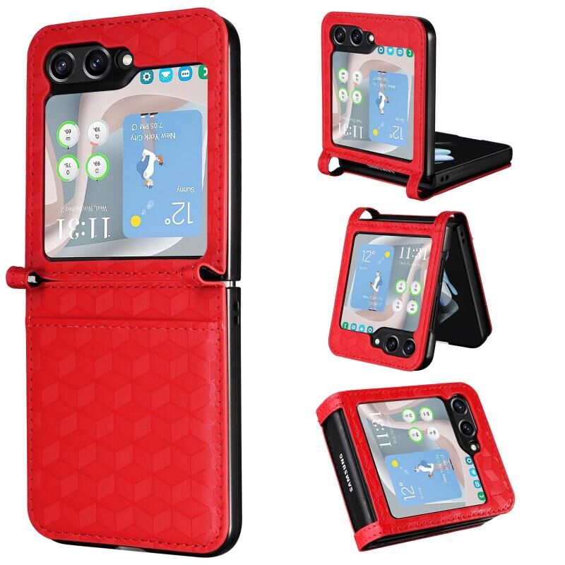 For Samsung Galaxy Z Flip6 Siamese Cubic Grid Texture Card Slot Leather Phone Case(Red)