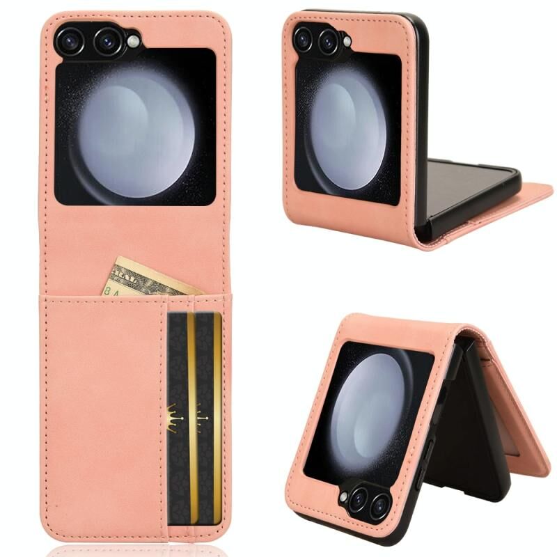 Για το Samsung Galaxy Z Flip6 δέρμα αίσθηση Half-split Εξωτερική υποδοχή κάρτας Πτυσσόμενο τηλέφωνο υπόθεση (ροζ)