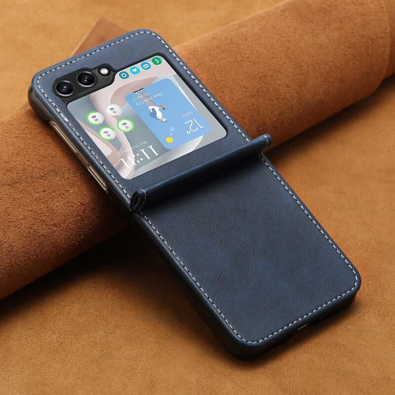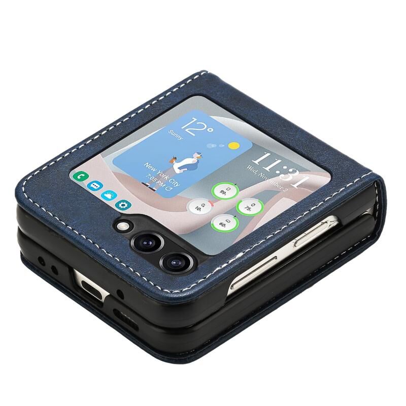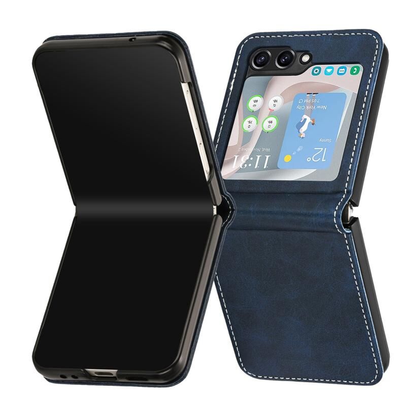 Για Samsung Galaxy Z Flip6 Αμιγές χρώμα μοσχάρι υφή πτυσσόμενα δέρμα τηλέφωνο υπόθεση (σκούρο μπλε)