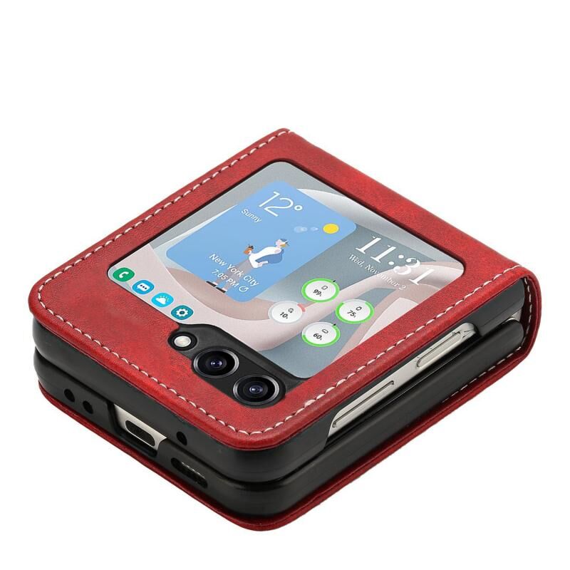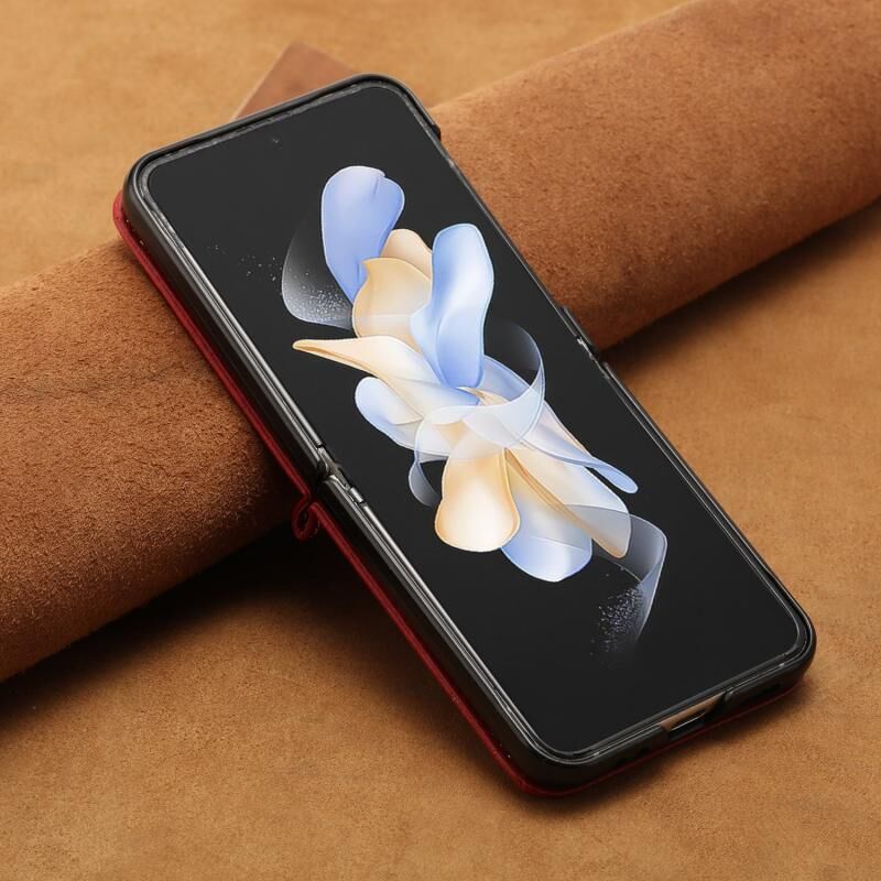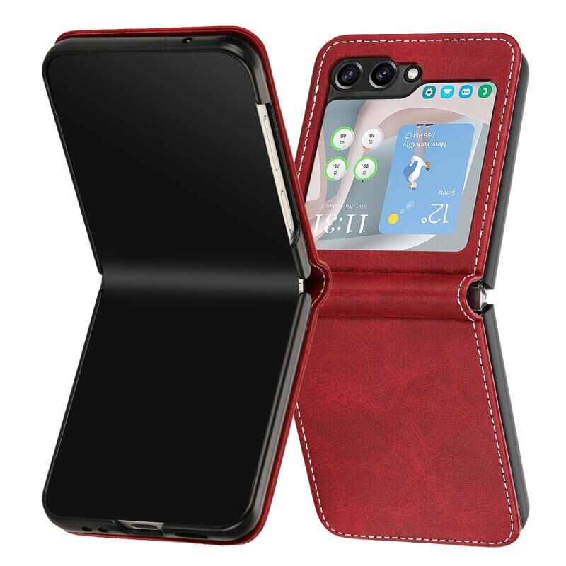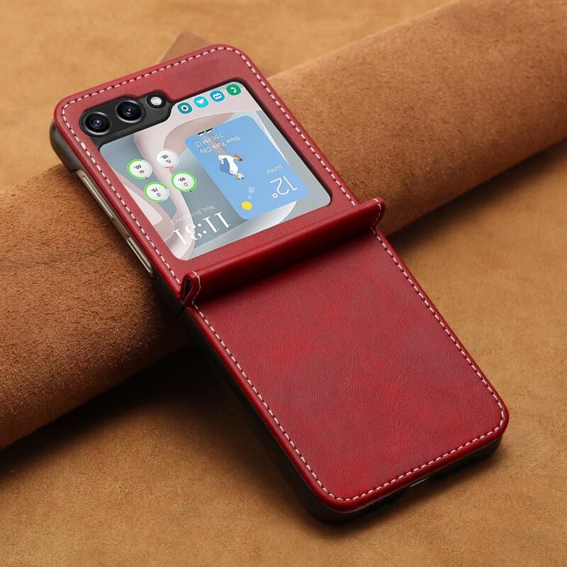 Για Samsung Galaxy Z Flip6 Αμιγές χρώμα μοσχάρι υφή πτυσσόμενα δέρμα υπόθεση τηλεφώνου (κόκκινο)