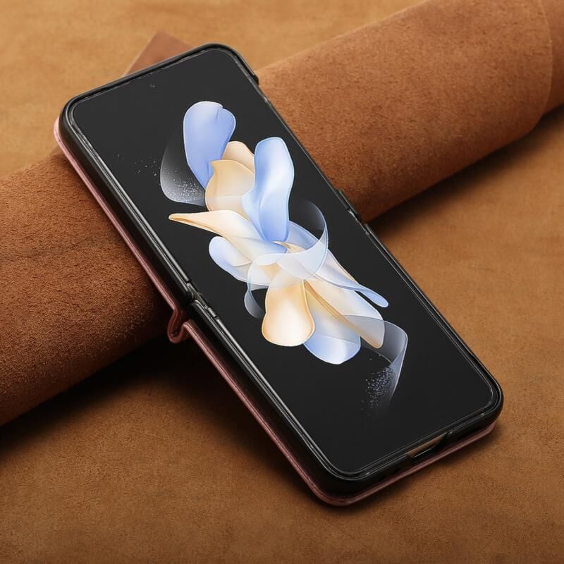 Για Samsung Galaxy Z Flip6 Αμιγές χρώμα μοσχάρι υφή Πτυσσόμενο δέρμα τηλέφωνο υπόθεση (Rose Gold)