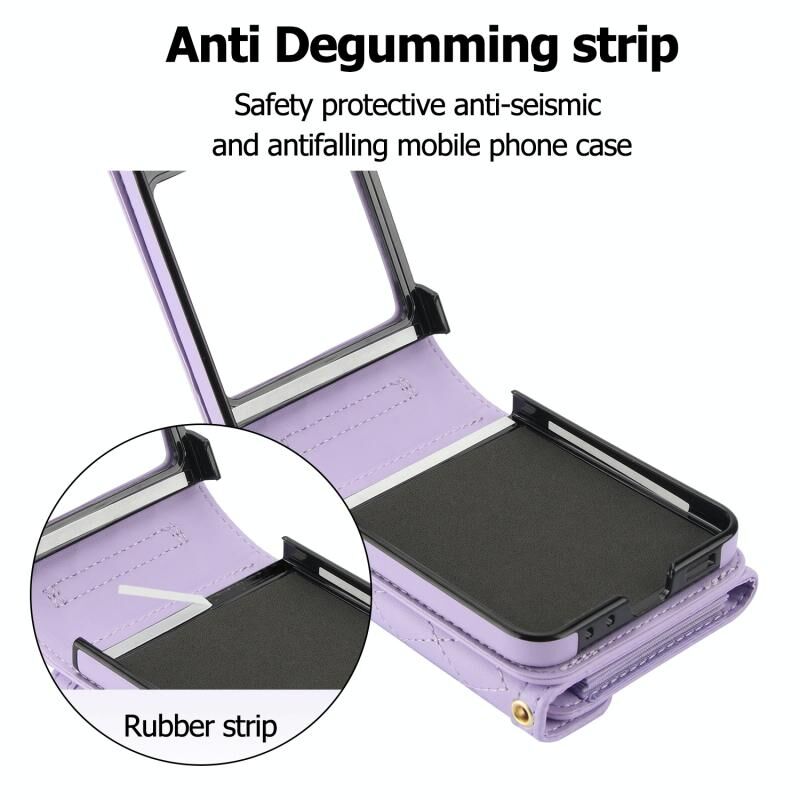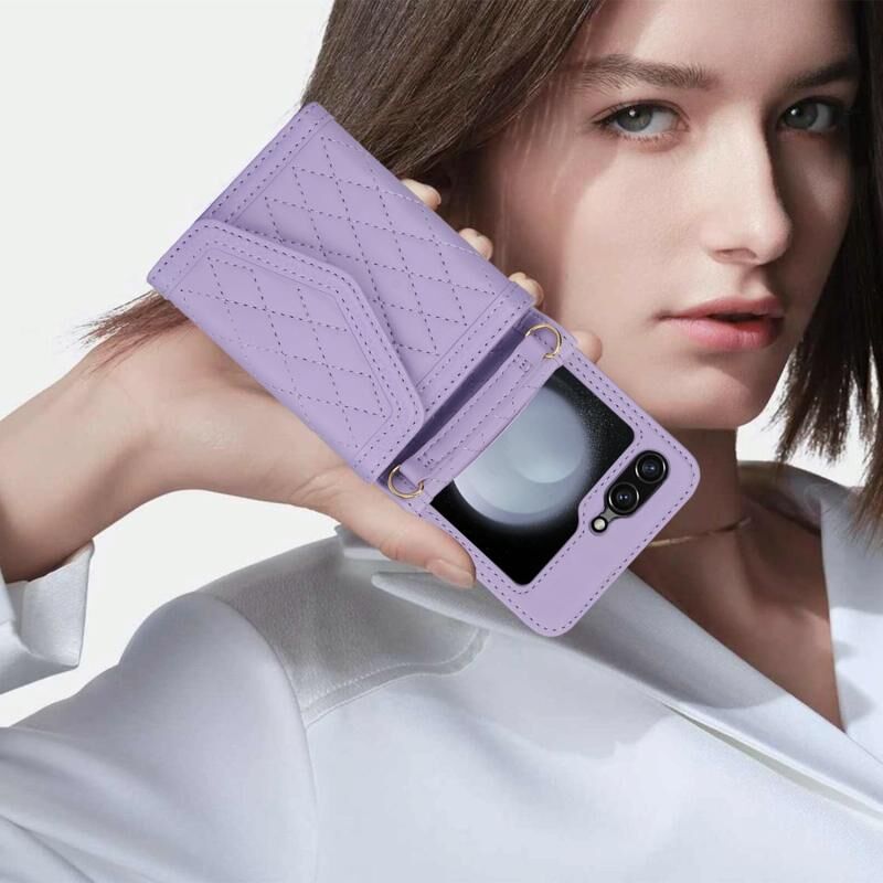 Για το Samsung Galaxy Z Flip6 Splicing Rhombic Υφή υπόθεση τηλεφώνου με μακρύ & κοντό κορδόνι, δεν περιλαμβάνεται στυλό (μωβ)