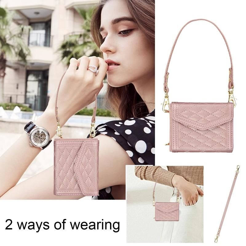 Για Samsung Galaxy Z Flip6 Splicing Rhombic Υφή υπόθεση τηλεφώνου με μακρύ & σύντομο κορδόνι, δεν περιλαμβάνεται στυλό (ροζ χρυσό)