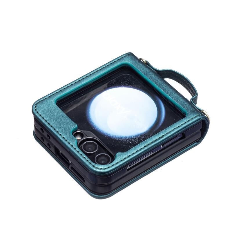 Για Samsung Galaxy Z Flip6 τετράγωνο σχήμα σταυρό κορδόνι δερμάτινη θήκη τηλεφώνου Lanyard (πράσινο)