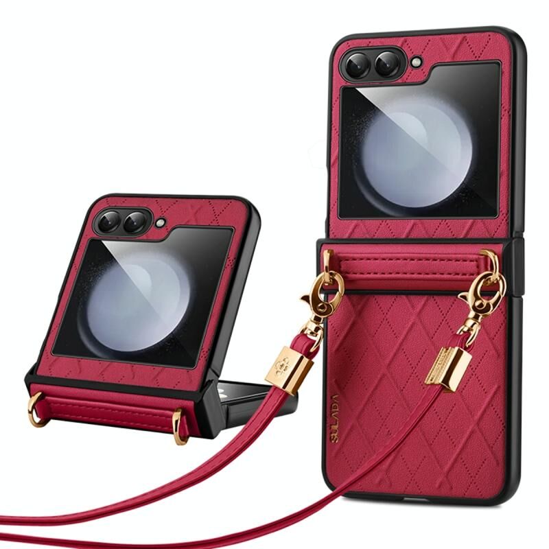 Για το Samsung Galaxy Z Flip6 SULADA Κομψό ρομβοειδές υφή Πτυσσόμενη θήκη τηλεφώνου με κορδόνι (κόκκινο) (SULADA)
