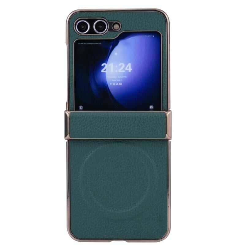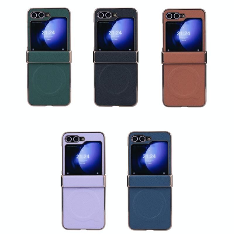 Θήκη τηλεφώνου για Samsung Galaxy Z Flip6 σε τρία μέρη με υφή Litchi και MagSafe (Μαύρο)