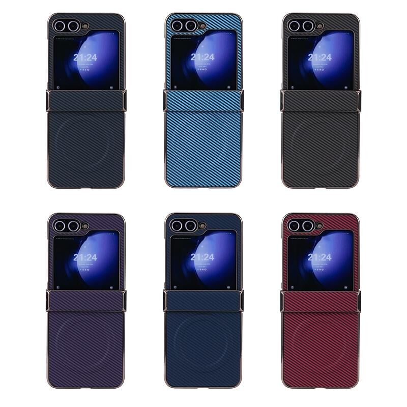 For Samsung Galaxy Z Flip6 Three Parts Plating Frame MagSafe Carbon Fiber Fold Phone Case(Blue)