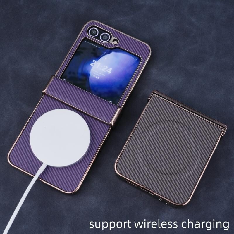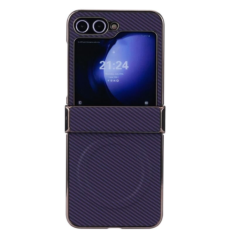 For Samsung Galaxy Z Flip6 Three Parts Plating Frame MagSafe Carbon Fiber Fold Phone Case(Dark Purple)