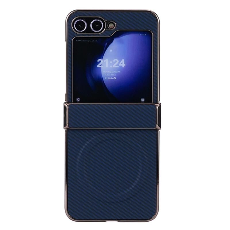 For Samsung Galaxy Z Flip6 Three Parts Plating Frame MagSafe Carbon Fiber Fold Phone Case(Navy Blue)
