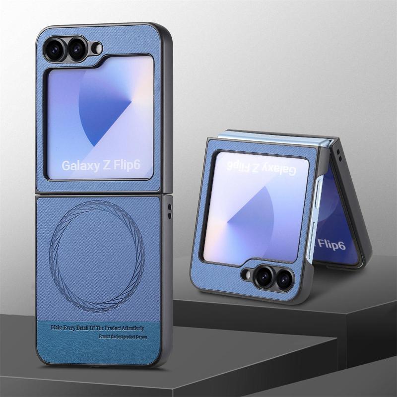 For Samsung Galaxy Z Flip6 Twill Fabric Leather Skin Magnetic Back Phone Case(Blue)
