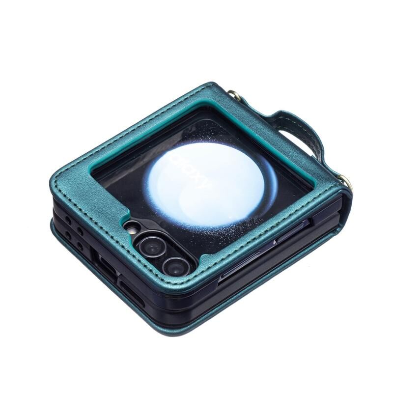 Για Samsung Galaxy Z Flip6 V-σχήμα Crossbody Lanyard δέρμα τηλέφωνο υπόθεση (πράσινο)