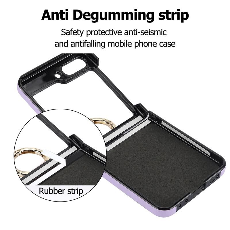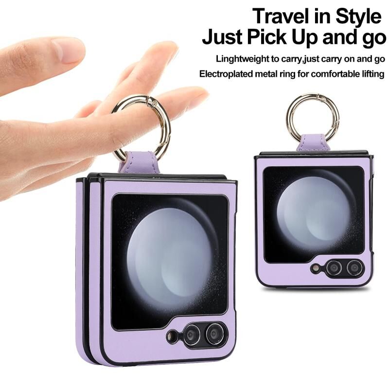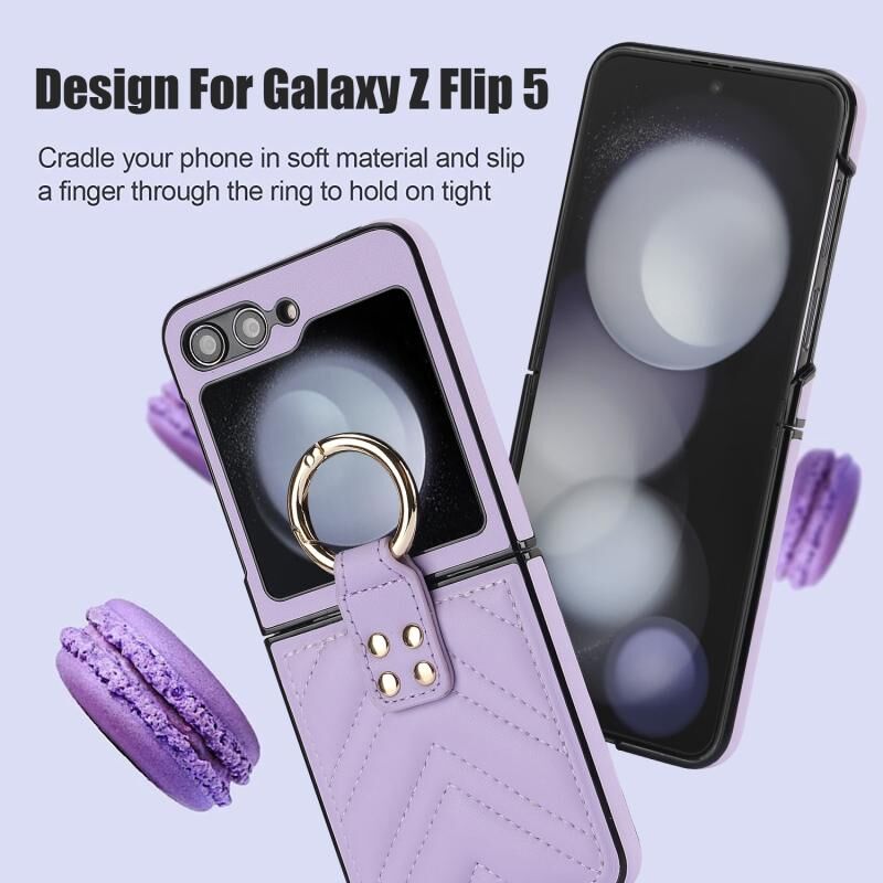 Για Samsung Galaxy Z Flip6 V-σχήμα PU υβριδικό TPU δαχτυλίδι κάτοχος υπόθεση τηλεφώνου (μωβ)