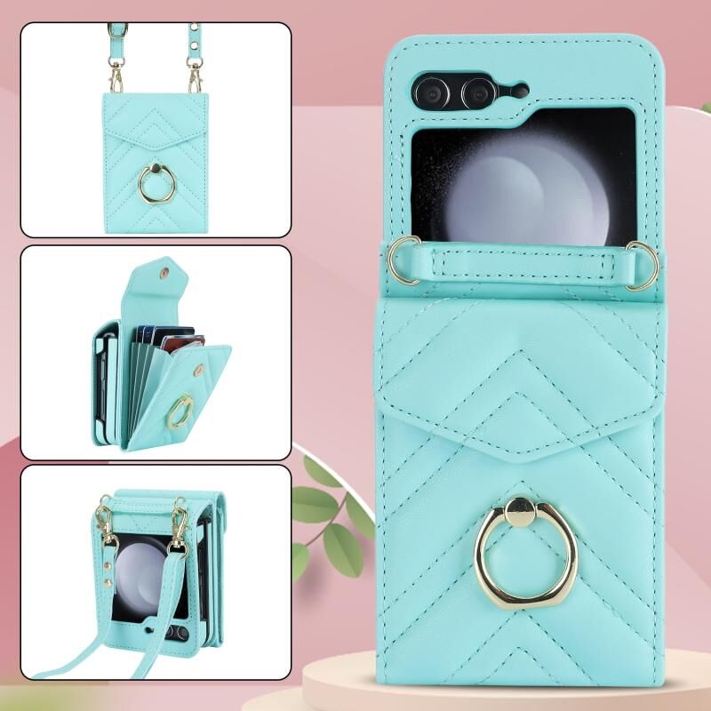 Για Samsung Galaxy Z Flip6 V-σχήμα RFID κάρτα Slot υπόθεση τηλεφώνου με δαχτυλίδι κάτοχος (Πράσινο)