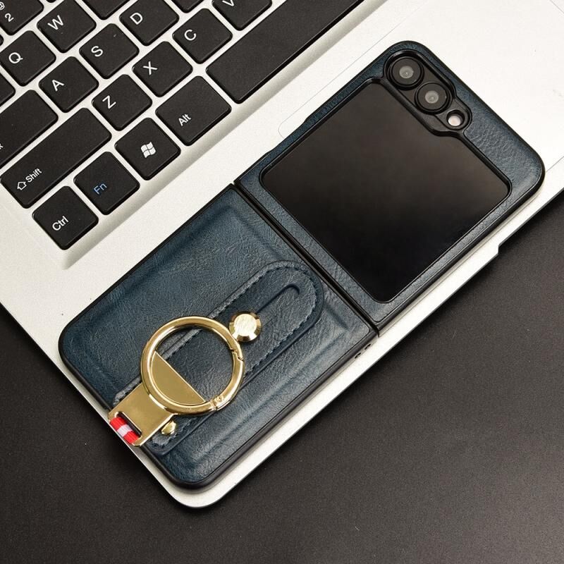 Για Samsung Galaxy Z Flip6 Wristband δέρμα πίσω θήκη τηλεφώνου (μπλε)