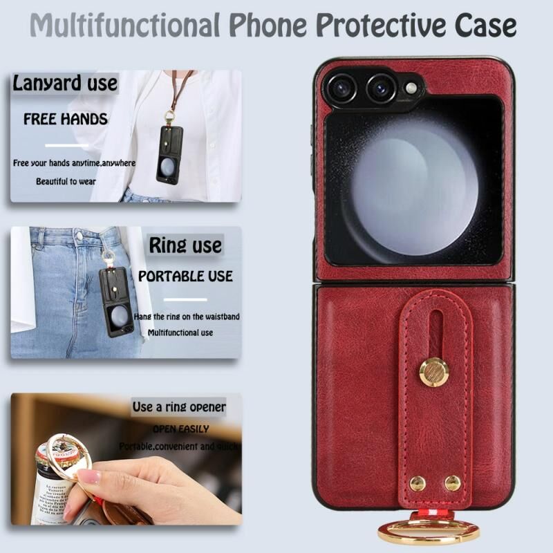 Για Samsung Galaxy Z Flip6 Wristband δέρμα πίσω θήκη τηλεφώνου (κόκκινο)