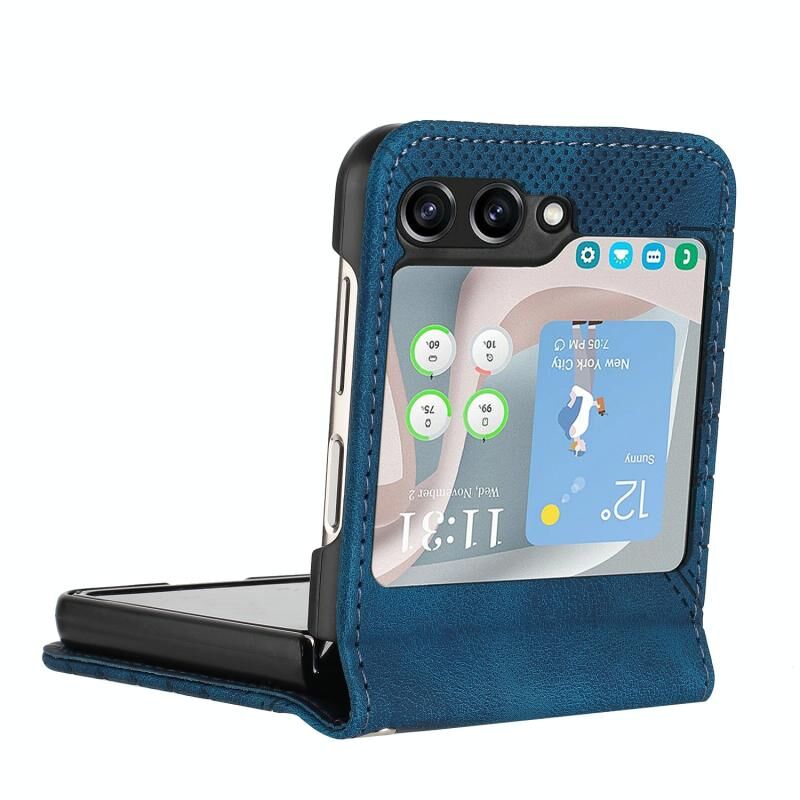 For Samsung Galaxy Z Flip6 YX0080 Grid Butterfly Embossed Pattern Flip Leather Phone Case with Lanyard(Dark Blue)
