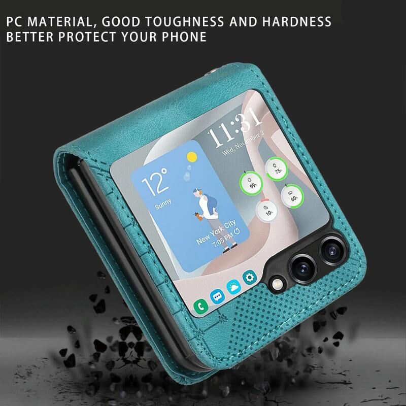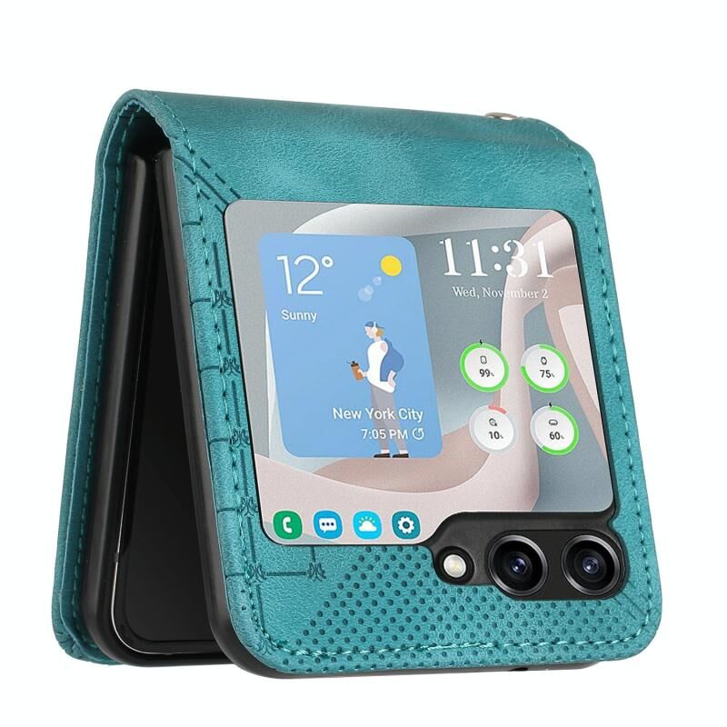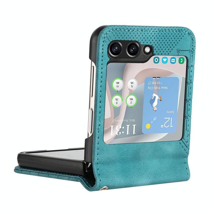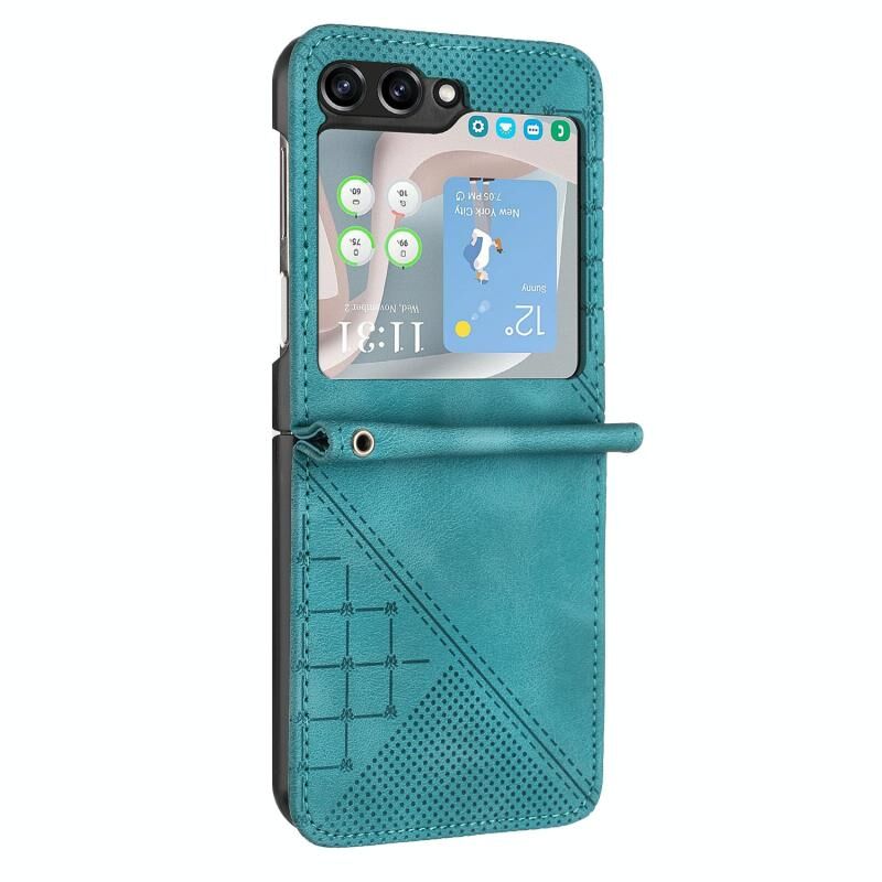 For Samsung Galaxy Z Flip6 YX0080 Grid Butterfly Embossed Pattern Flip Leather Phone Case with Lanyard(Light Blue)
