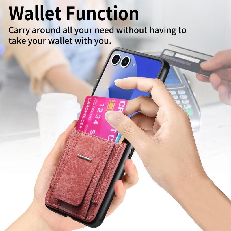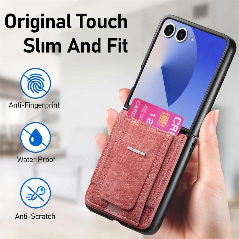 Θήκη τηλεφώνου Samsung Galaxy Z Flip7 5G από δέρμα σε ρετρό στυλ, με πτυσσόμενη βάση, ελαστική τσέπη για κάρτες (Μαύρο)
