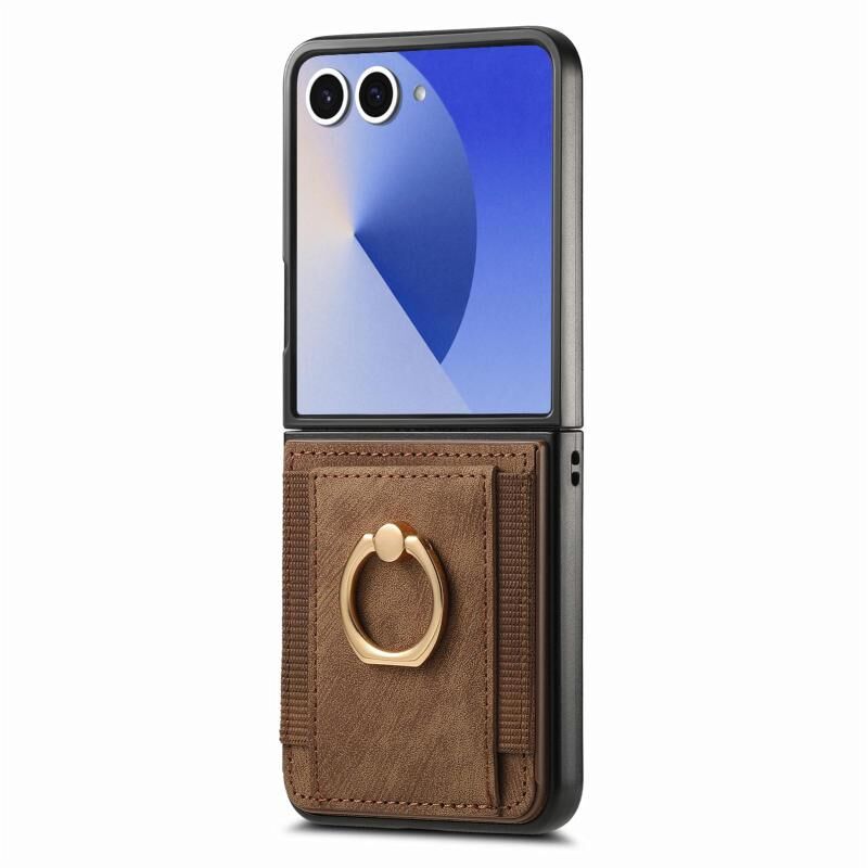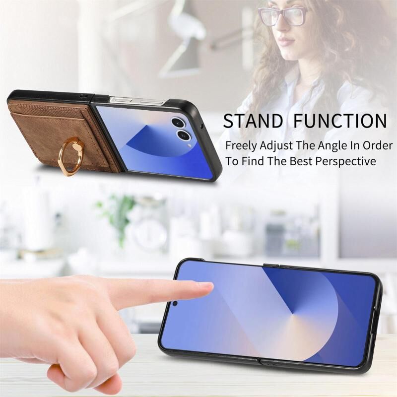 Θήκη τηλεφώνου για Samsung Galaxy Z Flip7 5G με ρετρό υφή, θήκη κάρτας με δακτύλιο (Μπλε)