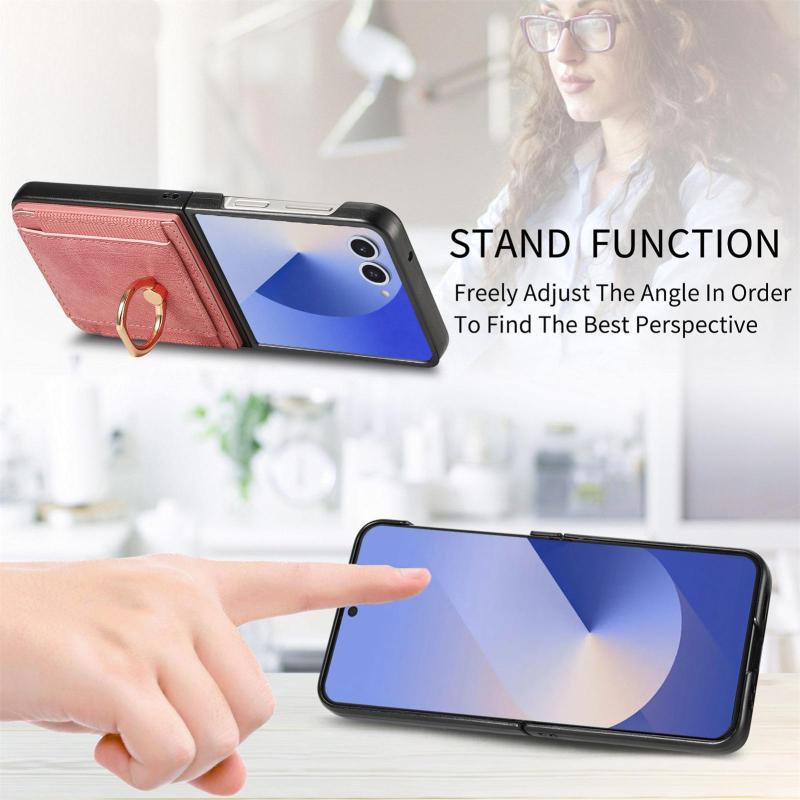 For Samsung Galaxy Z Flip7 5G Retro Skin-feel Ring Card Bag Phone Case(Pink)