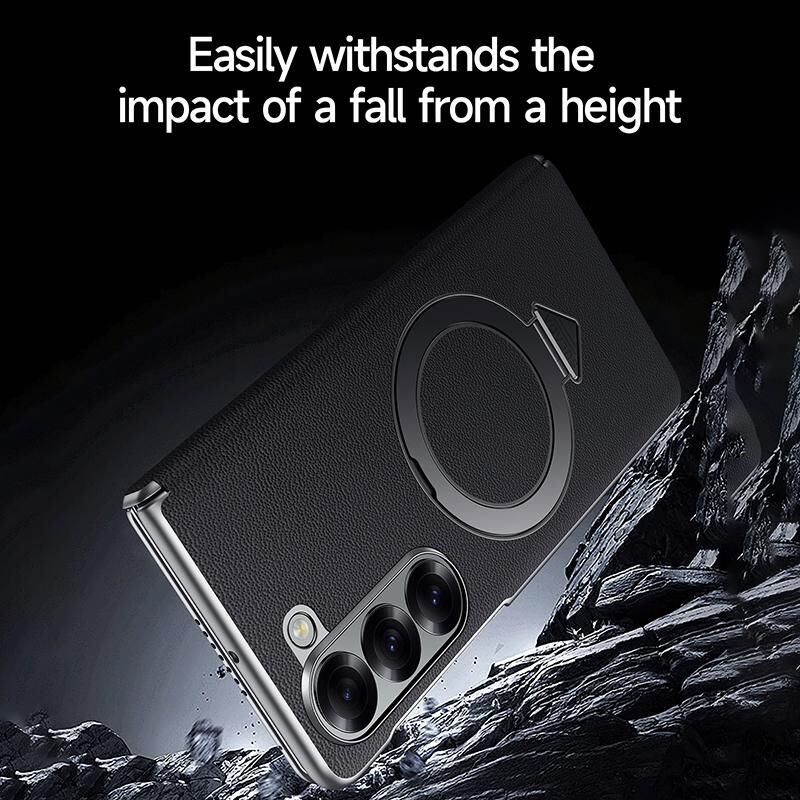 For Samsung Galaxy Z Fold 5 SULADA Top Grain Leather MagSafe Magnetic Holder Phone Case(Green) (SULADA)