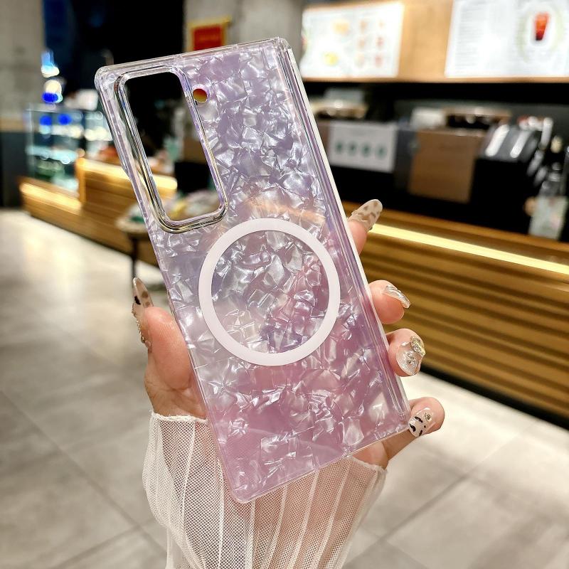 For Samsung Galaxy Z Fold Special Magnetic Axis Pearlescent Shell Texture MagSafe Phone Case(Purple)