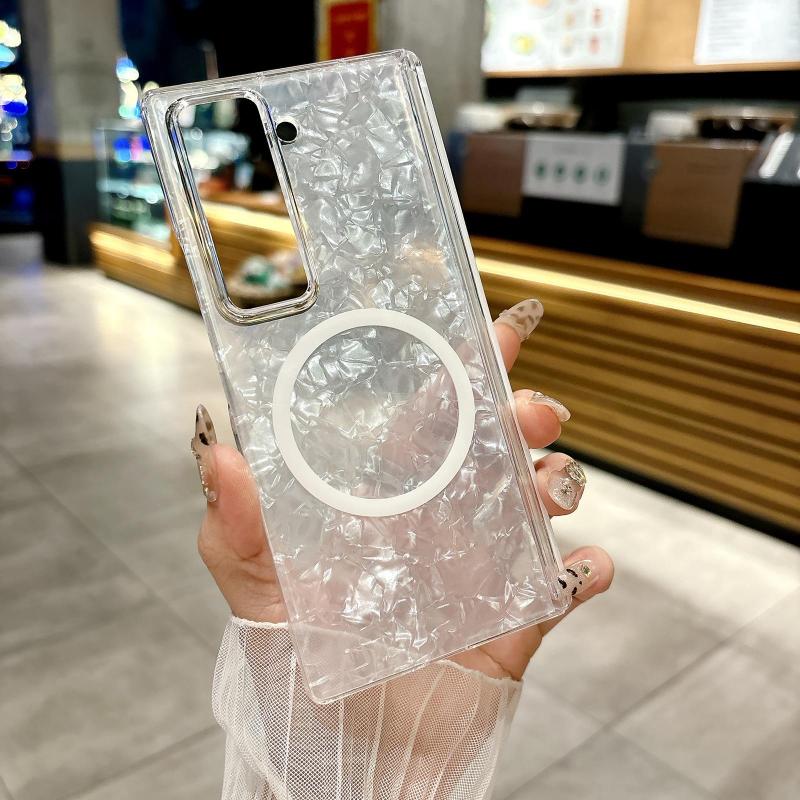 For Samsung Galaxy Z Fold Special Magnetic Axis Pearlescent Shell Texture MagSafe Phone Case(White)