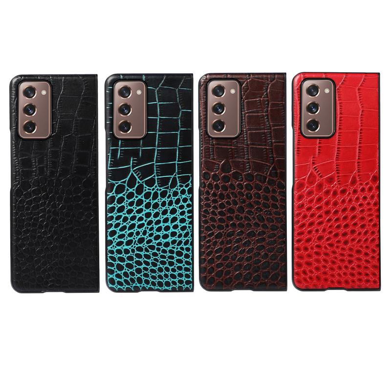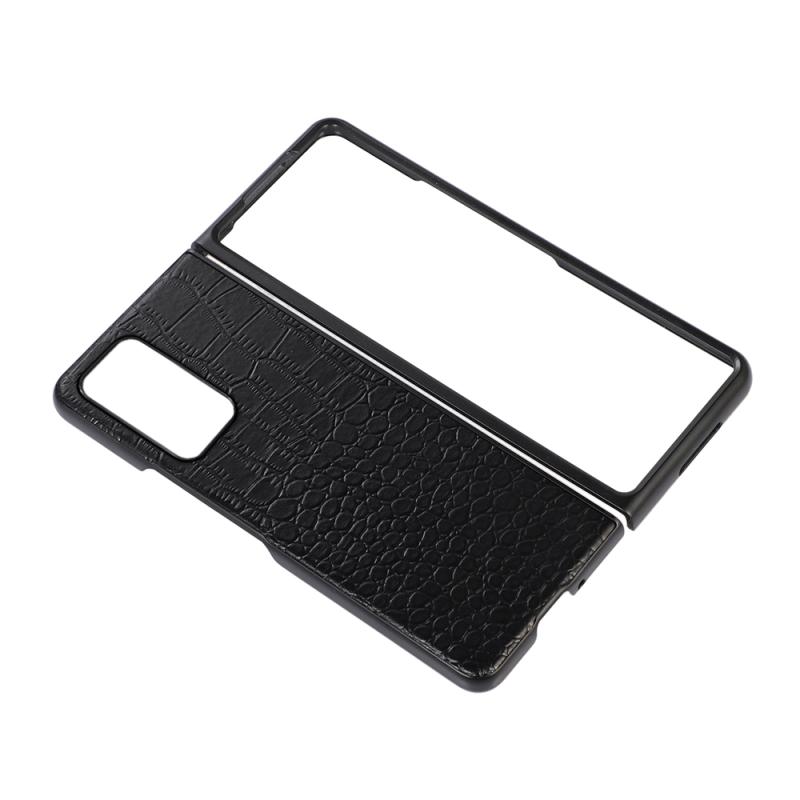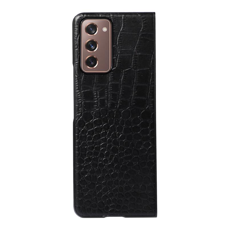 For Samsung Galaxy Z Fold2 5G Crocodile Top Layer Cowhide Leather Phone Case(Black)