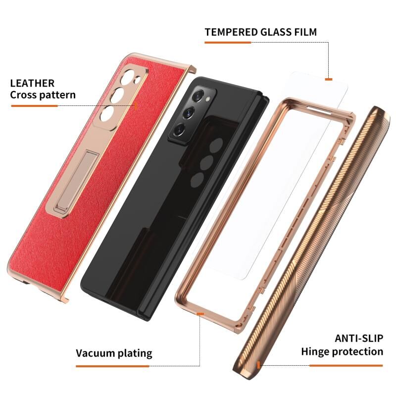Για το Samsung Galaxy Z Fold2 5G Electroplated θωράκιση θήκη τηλεφώνου Cross Texture (κόκκινο)