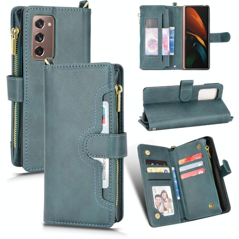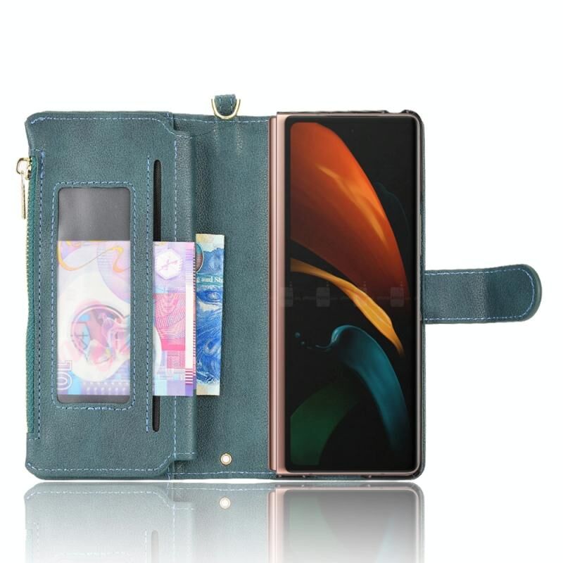 Για Samsung Galaxy Z Fold2 5G Litchi υφή φερμουάρ δερμάτινη θήκη τηλεφώνου (πράσινο)