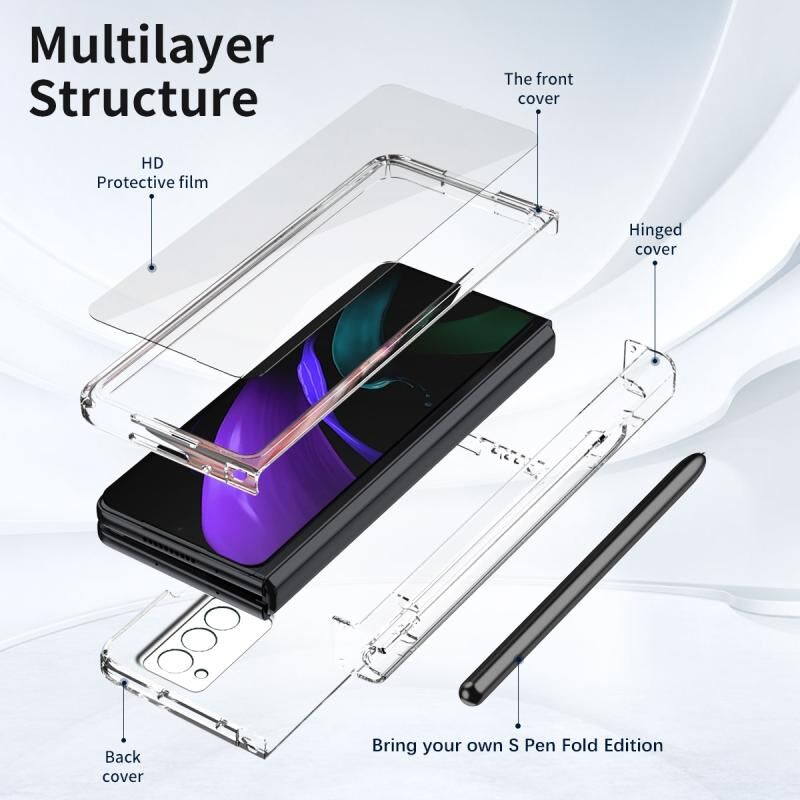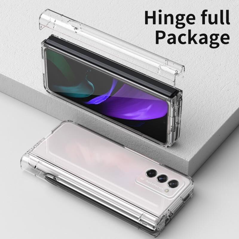 Για Samsung Galaxy Z Fold2 5G Macaron Hinge θήκη τηλεφώνου με στυλό Stylus Pen Fold Edition & προστατευτική μεμβράνη (διαφανές)