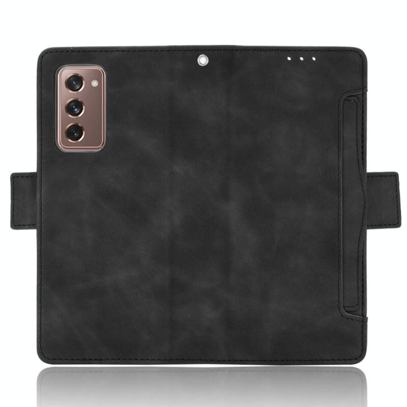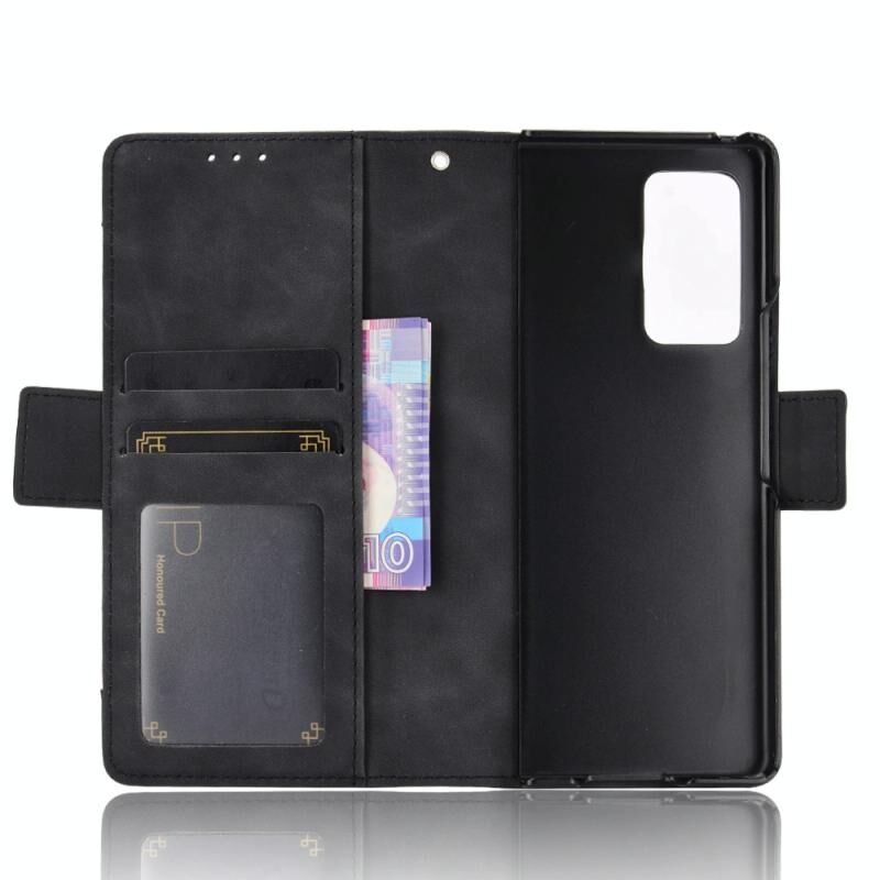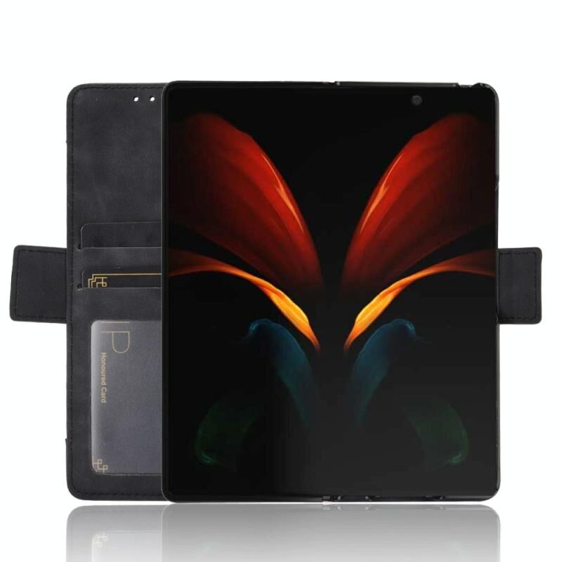 Θήκη για Samsung Galaxy Z Fold2 5G σε στυλ πορτοφολιού, με υφή δέρματος μοσχαριού και ξεχωριστή υποδοχή για κάρτες (Μαύρο)