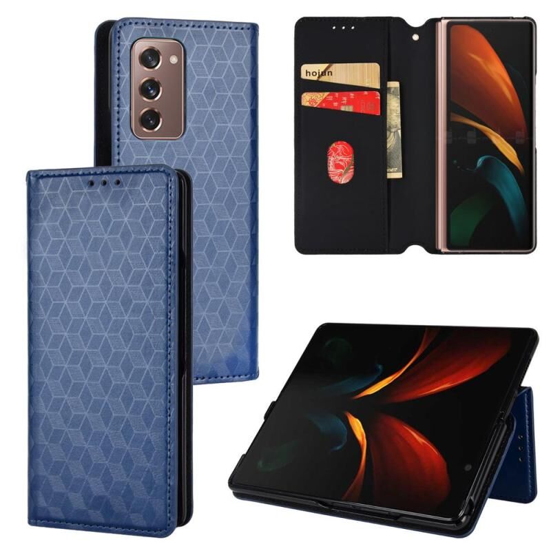 Θήκη τηλεφώνου Samsung Galaxy Z Fold2 Cubic Grid Texture Flip από δέρμα (Μαύρο)