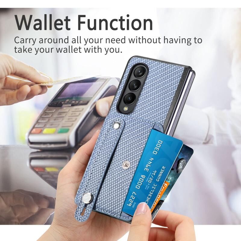 Για Samsung Galaxy Z Fold2 Wristband Kickstand κάρτα πορτοφόλι πίσω κάλυμμα θήκη τηλεφώνου (Μπλε)