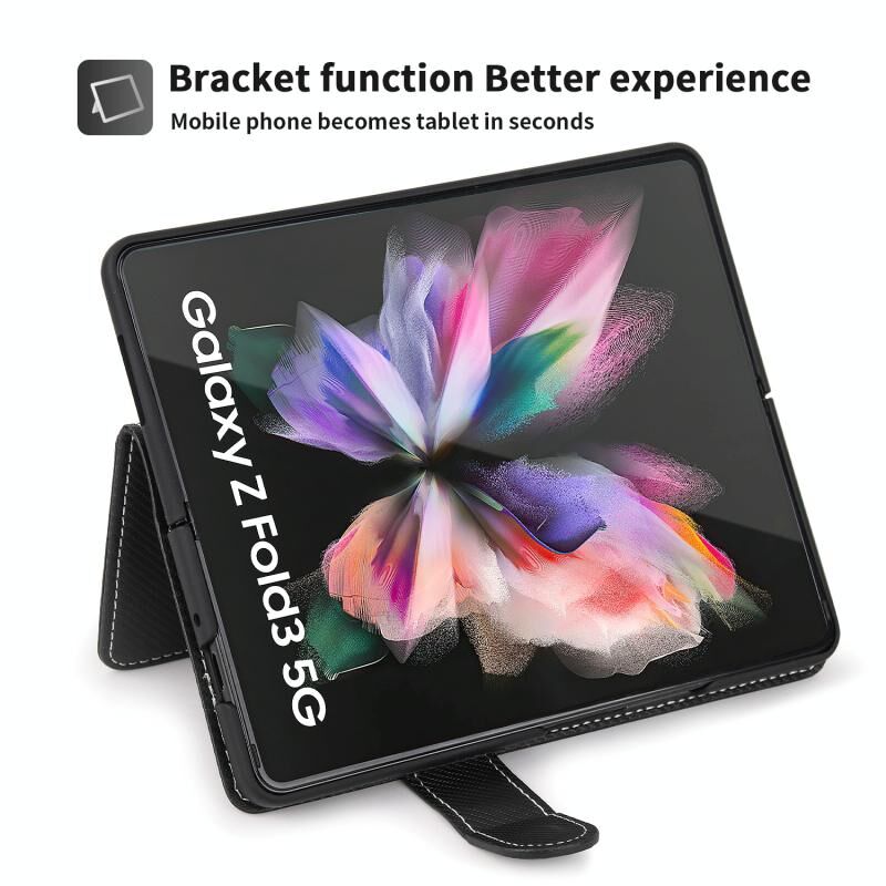 Για το Samsung Galaxy Z Fold3 5G 2 σε 1 Split Πτυσσόμενη δερμάτινη θήκη τηλεφώνου (Twill Μαύρο)