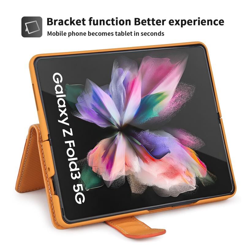 Για το Samsung Galaxy Z Fold3 5G 2 σε 1 Split Πτυσσόμενη δερμάτινη θήκη τηλεφώνου (Twill Κίτρινο)