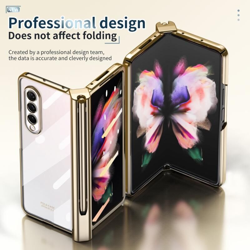 Για Samsung Galaxy Z Fold3 5G 360 Πλήρης σώμα ηλεκτρολυτική μεντεσέ τηλέφωνο υπόθεση με γραφίδα (Χρυσός)