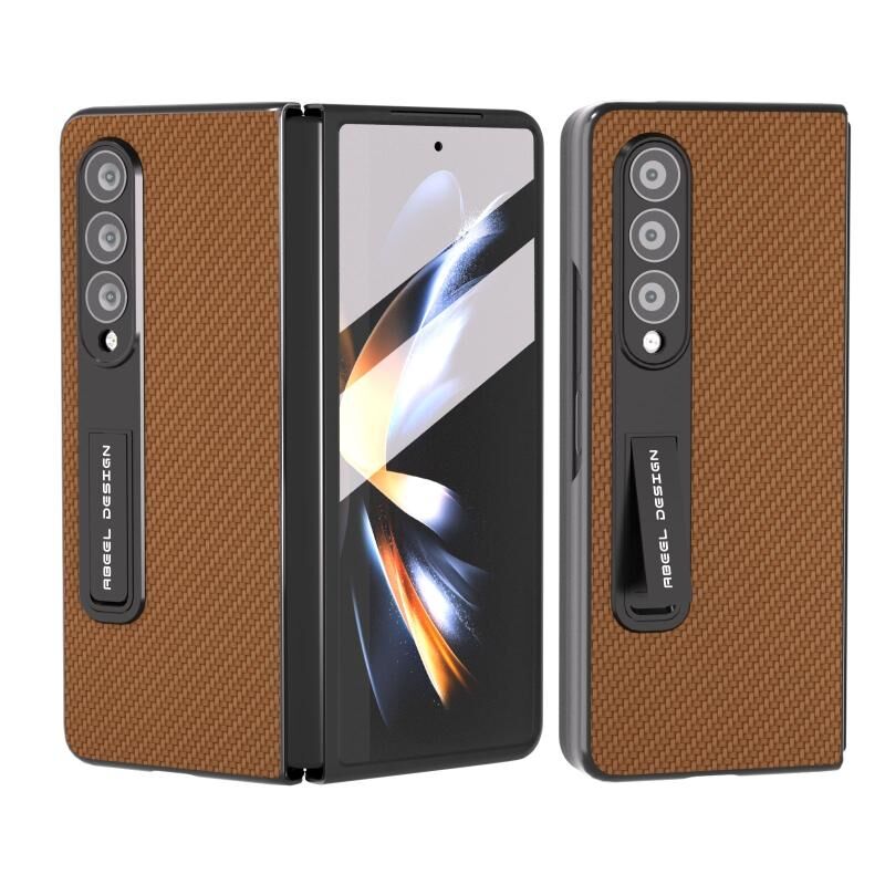 Για το Samsung Galaxy Z Fold3 5G Ανθρακονήματα υφή ενσωματωμένη προστατευτική θήκη τηλεφώνου με θήκη (Σκούρο καφέ)