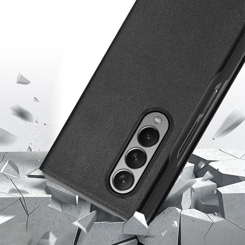 Για το Samsung Galaxy Z Fold3 5G Θήκη από δέρμα καουμπόης με αντικραδασμική πτυσσόμενη δερμάτινη θήκη (Καφέ)
