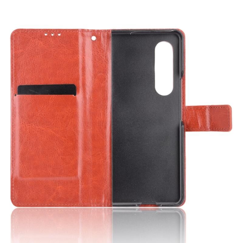 Για Samsung Galaxy Z Fold3 5G Crazy Horse Υφή οριζόντια Flip δερμάτινη θήκη με υποδοχή για στυλό & κορδόνι (καφέ)