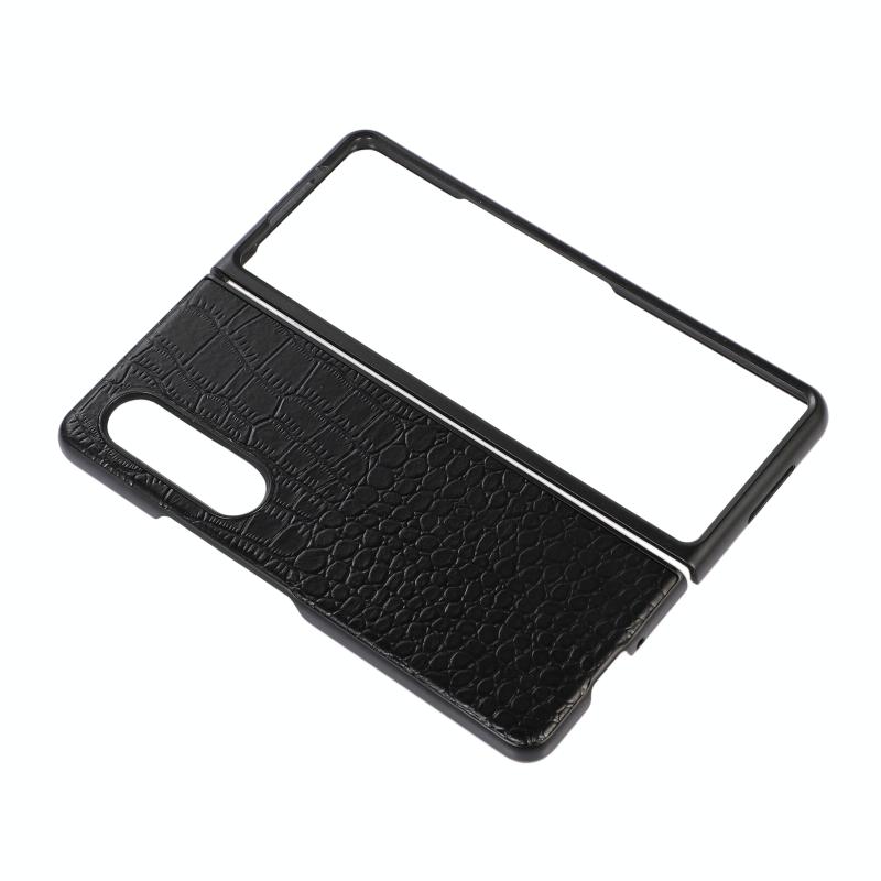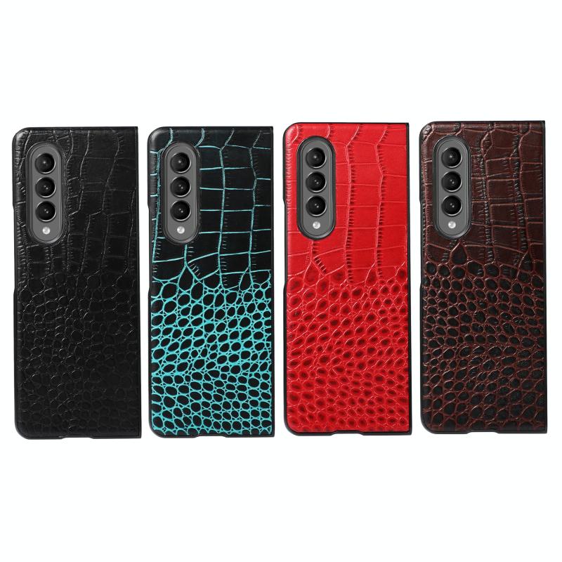 Θήκη τηλεφώνου από δέρμα αγελάδας με επικάλυψη κροκόδειλου για Samsung Galaxy Z Fold3 5G (Κυανό Μπλε)