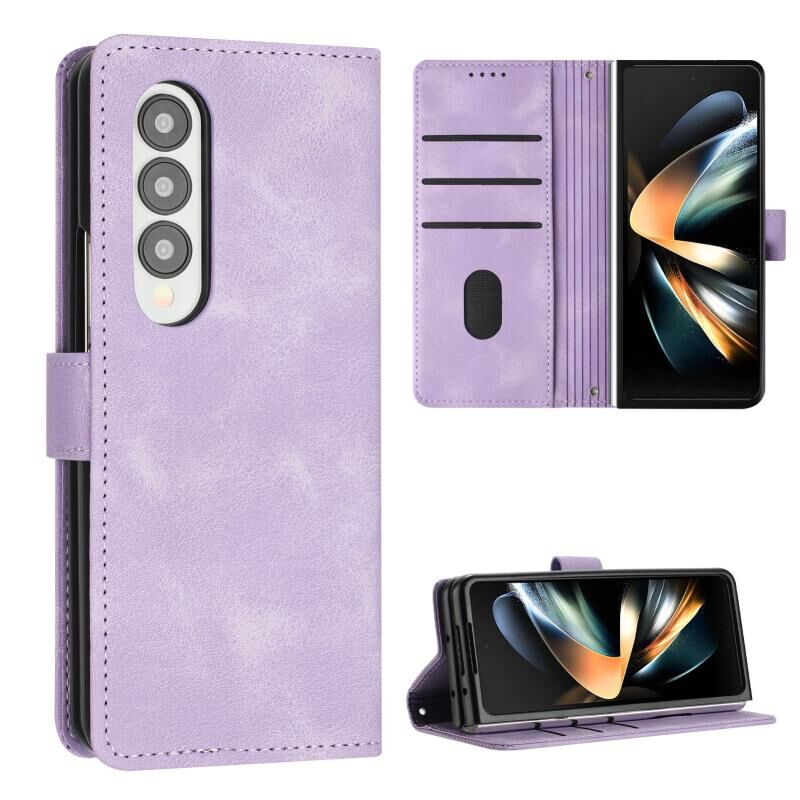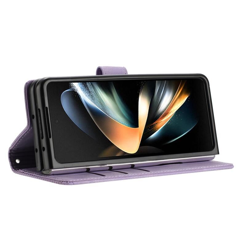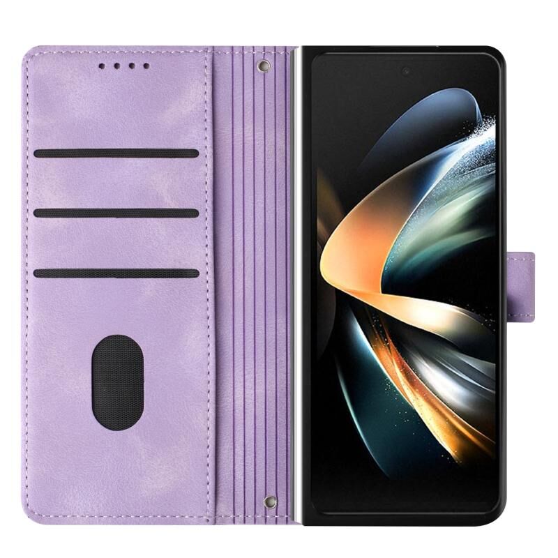 Για το Samsung Galaxy Z Fold3 5G Dream Triangle Folding δερμάτινη θήκη τηλεφώνου με κορδόνι (μωβ)