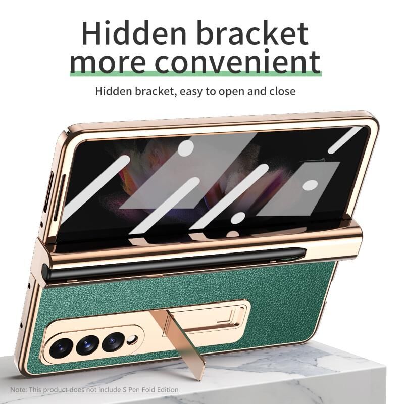 Για το Samsung Galaxy Z Fold3 5G Electroplated μεντεσέ μεντεσέ Pen Slot Lychee υπόθεση τηλεφώνου (πράσινο)